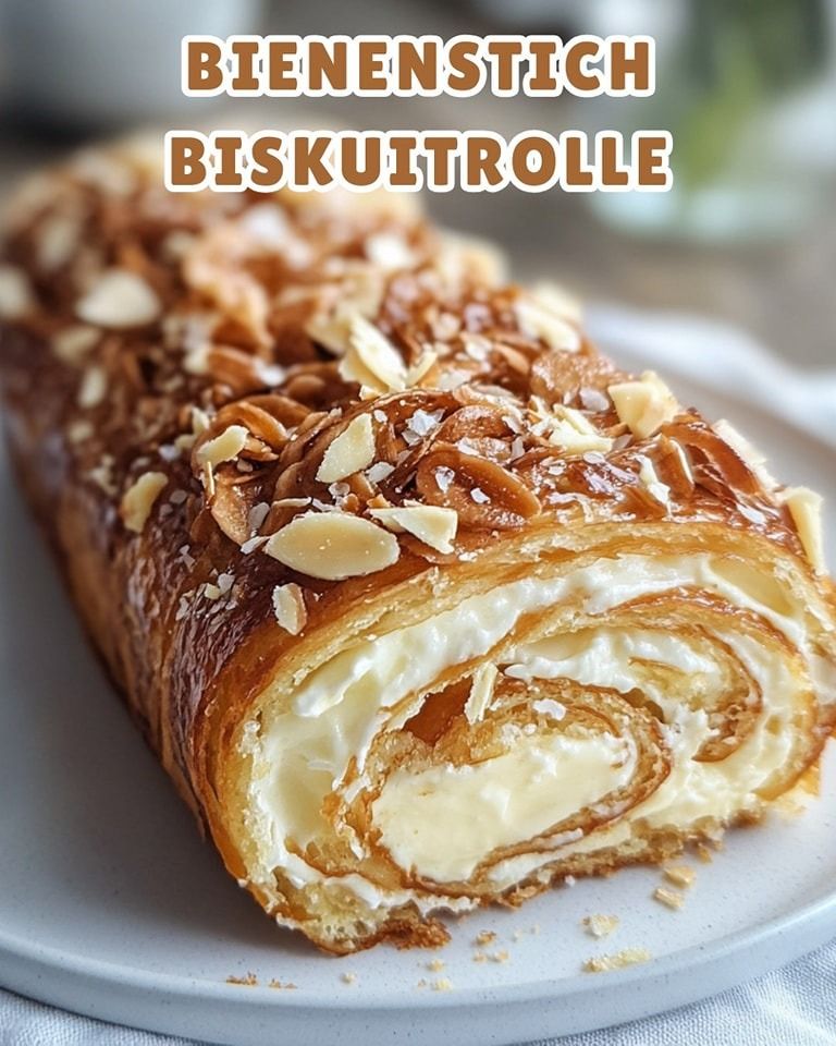 Bienenstich-Biskuitrolle – Lecker und Cremig.